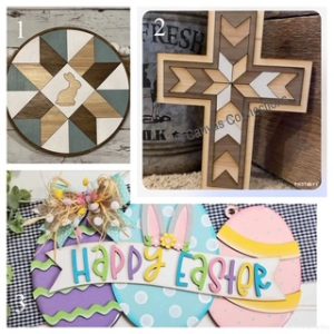 Come paint your choice of three wooden projects; Wood bunny barn quilt, wood cross barn quilt or Easter hanger. Cost is just $55. Seating is limited. Invite a friend or two along. Snacks and refreshments available for purchase.